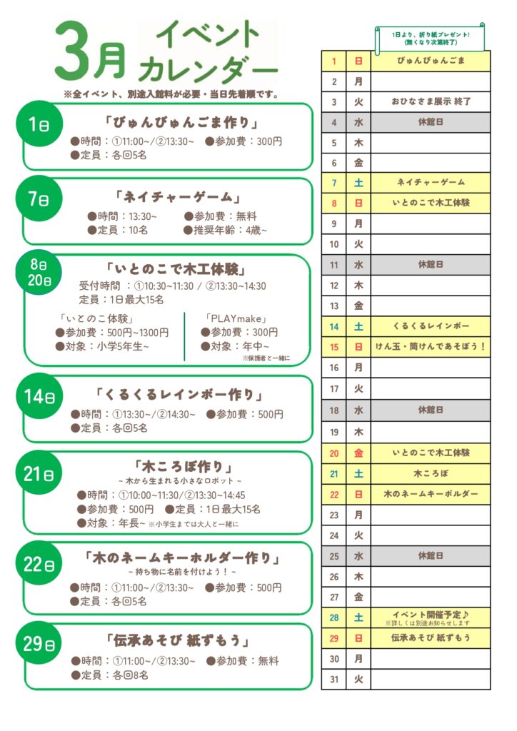 【佐川おもちゃ美術館】3月のイベント佐川おもちゃ美術館 3月のイベント情報です。各イベントの参加には、別途入館料が… -