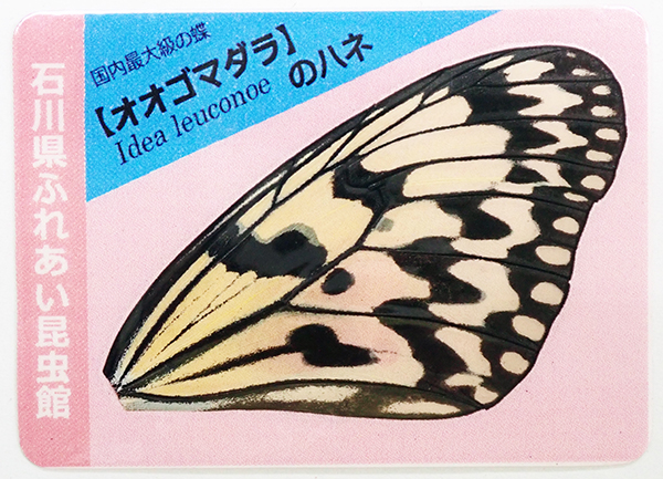 ふれあい昆虫館 | イベント会場 | ・土日祝の定期イベント ・工作イベント(11/3、12/7、2/22) ・こん虫おもしろ運動会(~10/19の土日祝) | ![]() オオゴマダラのハネ |