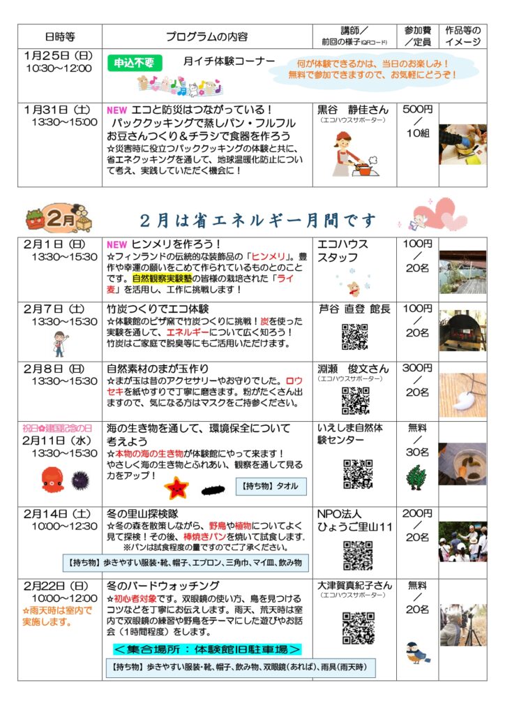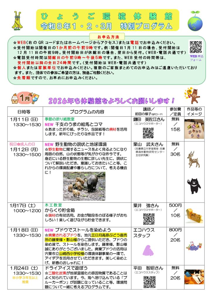 ひょうご環境体験館 令和8年1・2・3月 特別プログラム
