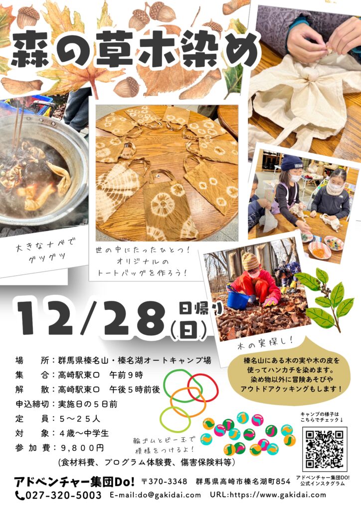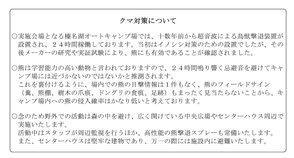 参加費:日帰り=9800円 1泊2日=21000円 (食材料費、プログラム体験費、傷害保険料等)