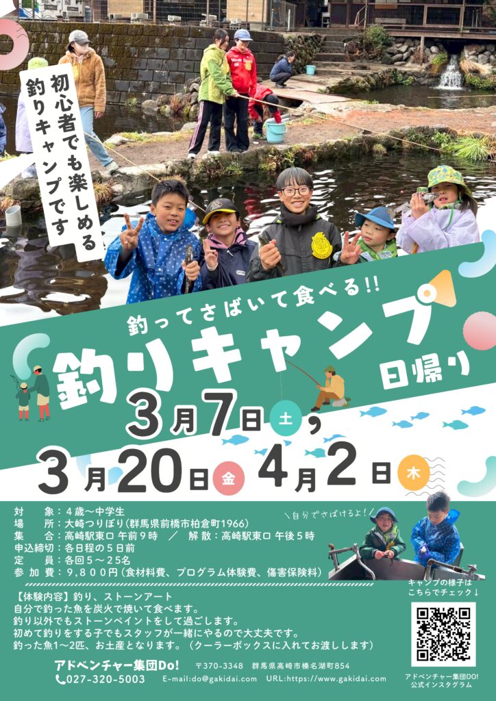 内容:管理釣り場での釣り、釣った魚の裁きと炭火焼き、ストーンアートなども行います。