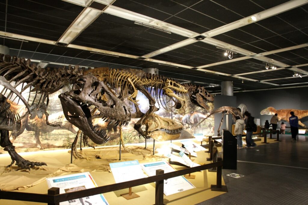 迫力あるティラノサウルスの全身復元骨格と、その仲間たちの恐竜展示が集結!