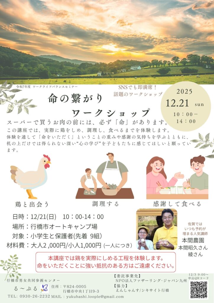 12/21(日)、行橋市オートキャンプ場を会場に開催される【命の繋がりワークショップ】の参加者募集のお知らせです。