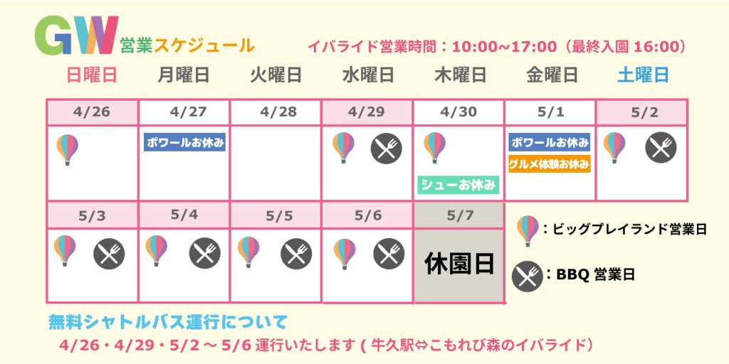 ◆ 5月2日(土) ~ 5月6日(水/祝)の期間限定料金