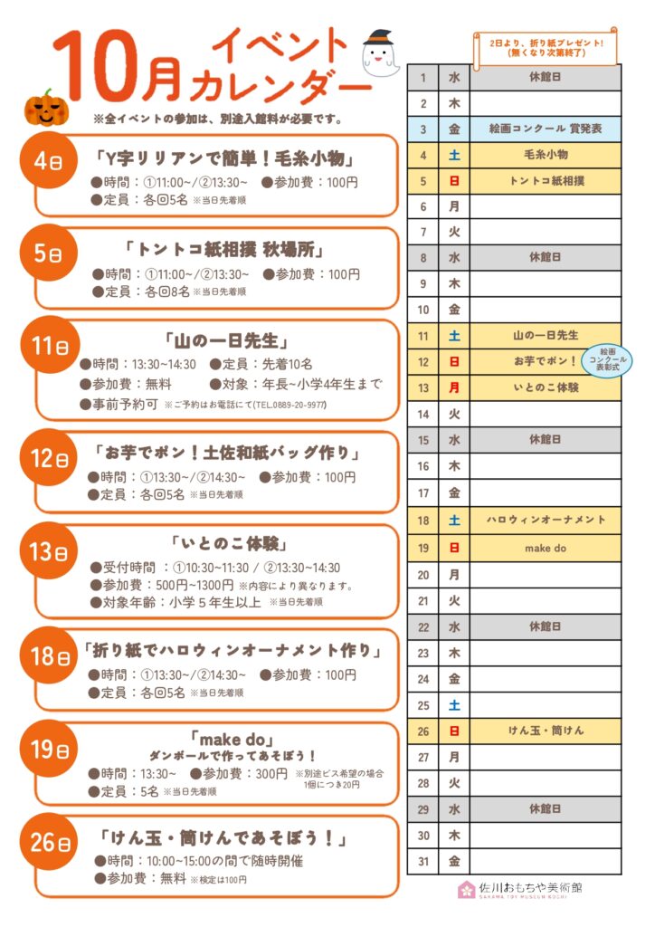 佐川おもちゃ美術館の10月イベント情報です。 各イベントの参加には、別途入館料が... -